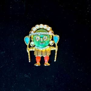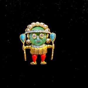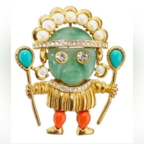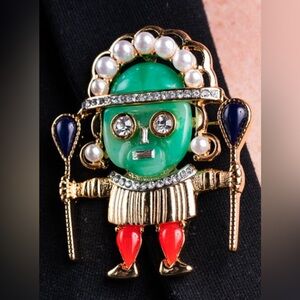 Kenneth Jay Lane Gold, Jade, Lapis & Coral Aztec Warrior/Medicine Man