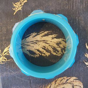 Elegant bracelet with vibrant blue stones. Accented with gold detailing. Perfect for any occasion.