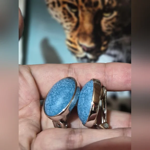 Elegant blue earrings with silver accents. Perfect for any occasion.
