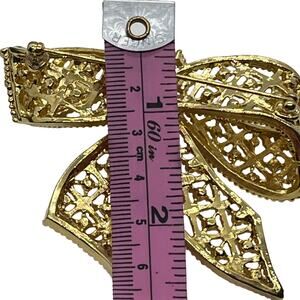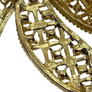 Kenneth Jay Lane Bow Brooch Pin Gold Tone Vintage KJL Rhinestone Women Retro