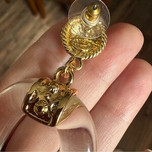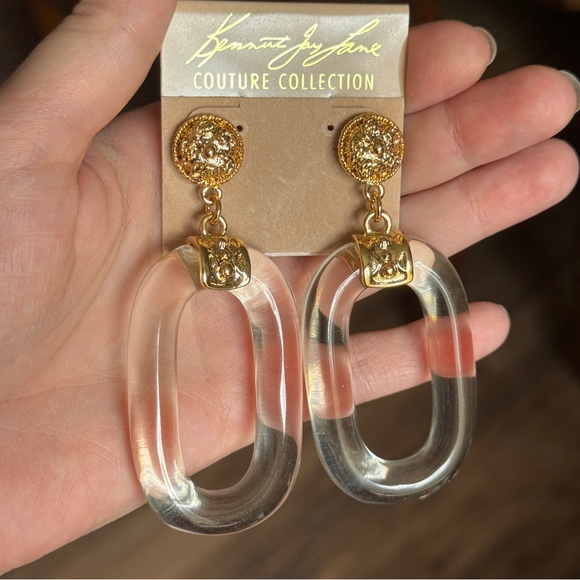 Kenneth Jay Lane Couture Clear Lucite Drop Earrings Gold Tone New 80s Style