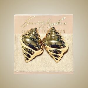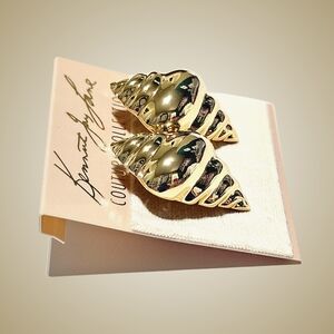 Kenneth Jay Lane Earrings Gold Tone Shiny Shell Studs Minimalist Vacation Boho