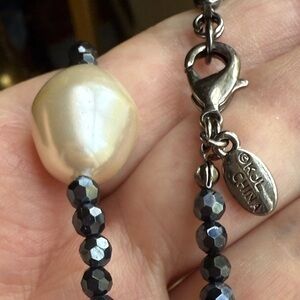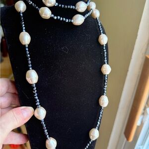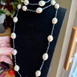 This stunning necklace features elegant pearls paired with sleek black beads, perfect for any occasion.