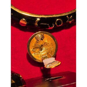 Kenneth Jay Lane Gold & Black Celestial Design Clip Earrings & Bracelet Jewelry