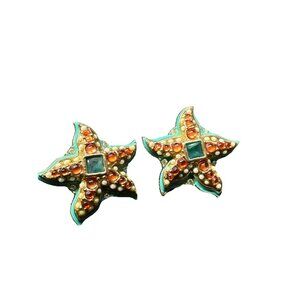 Chic earrings by Kenneth Jay Lane. Features deep blue stones in a gold setting. Perfect for adding elegance.