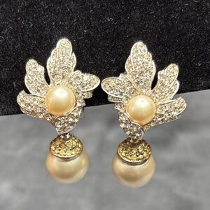 Kenneth Jay Lane Gold and Cream Pearl Earrings