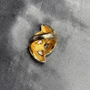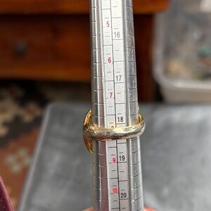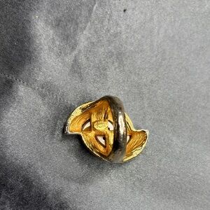 Chic ring with gold and silver tones. Features sparkling crystals. Perfect for any occasion. Very pretty ring somewhere on band.