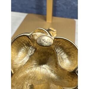 These Kenneth Jay Lane Goldtone Satin Finish Abstract Clip-On Earrings are a stunning addition to any jewelry collection. The elegant design, vintage appeal, and gold color make them a timeless piece that can elevate any outfit. The clip-on closure ensures easy wearing, and the stud style adds a touch of sophistication. Signed by the designer, these earrings are a beautiful representation of beauty and style.