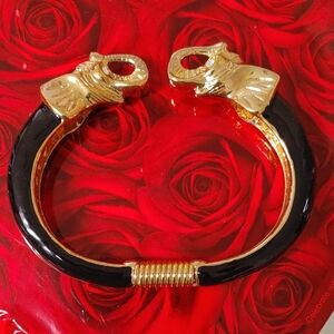 KJL Kenneth Jay Lane Gripoix Style Hinged Cuff Bracelet. Great pre-owned vintage condition with some minor marks in enameling as shown. Please review all photos and video for condition