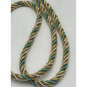 Kenneth Jay Lane KJL 1972 Rope Twisted 28” Vintage Blue White Gold Necklace
