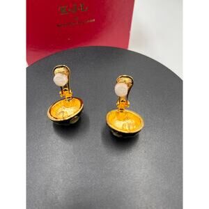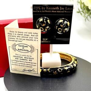 KJL Kenneth J Lane Black Enamel Moon Sta Celestial Clip On Earrings and Hinged Bangle Bracelet