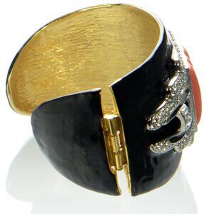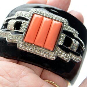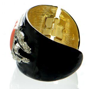 Kenneth Jay Lane KJL Black Enamel Coral Deco Cuff Bracelet