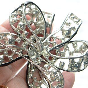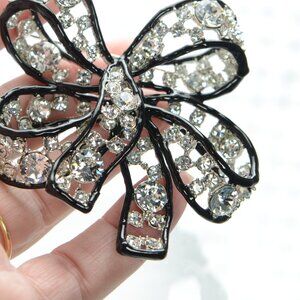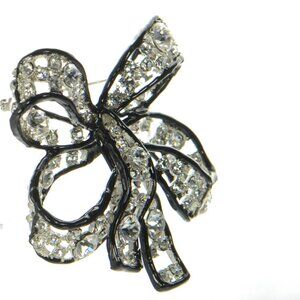 Kenneth Jay Lane KJL Black Enamel Crystal Bow Brooch