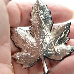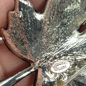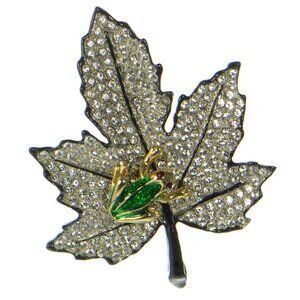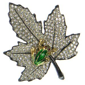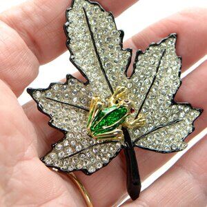 Kenneth Jay Lane KJL Black Enamel Crystal Leaf with Frog Pin Brooch