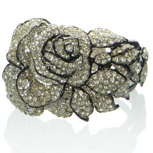 Kenneth Jay Lane KJL Black Enamel Pavé Rose Bracelet