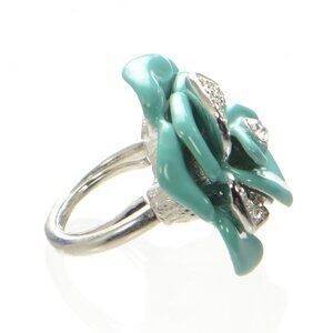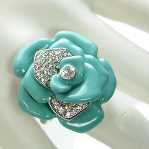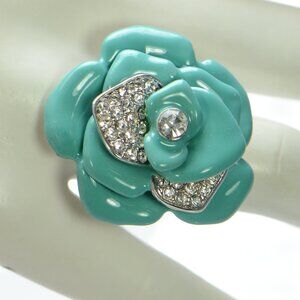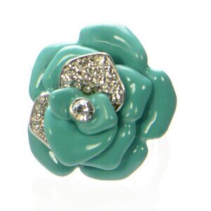 Kenneth Jay Lane KJL Enamel & Crystal Flower Ring