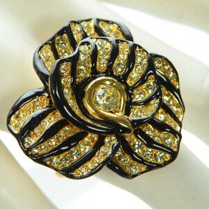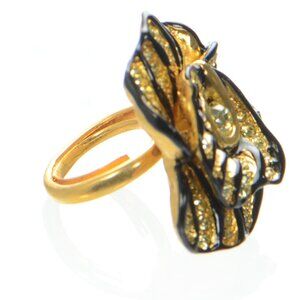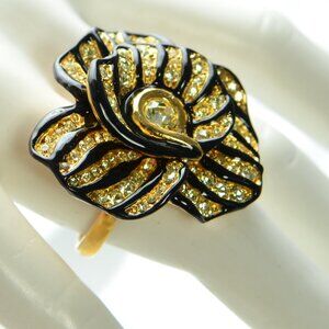 Kenneth Jay Lane KJL Enamel& Crystal Flower Ring