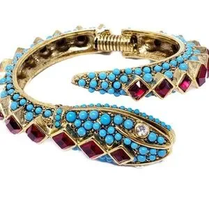 Kenneth Jay Lane KJL Faux Ruby & Turquoise Snake Bangle Bracelet New