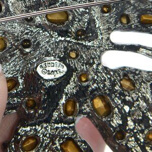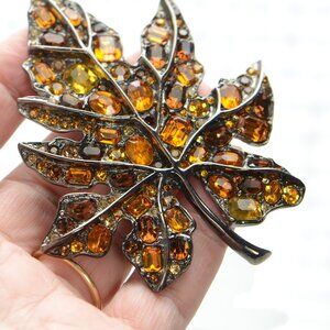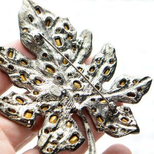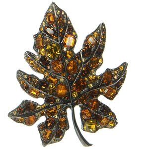 Kenneth Jay Lane KJL Gunmetal Crystal Leaf Pin Brooch