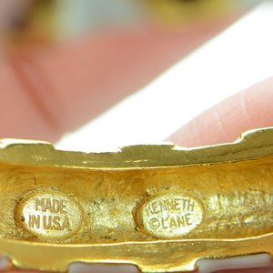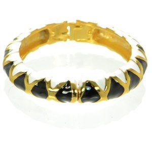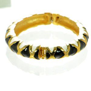 Kenneth Jay Lane KJL Polished Gold Black & White Enamel Bangle Bracelet
