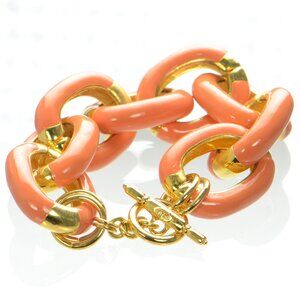 Kenneth Jay Lane KJL Polished Gold & Coral Enamel Chunky Link Bracelet