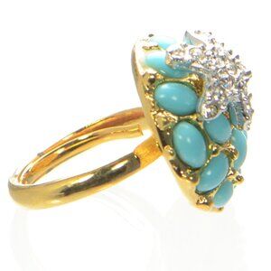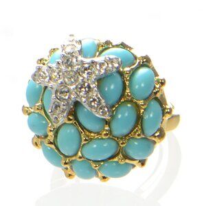 Kenneth Jay Lane KJL Turquoise Cabochon & Crystal Starfish Cocktail Ring