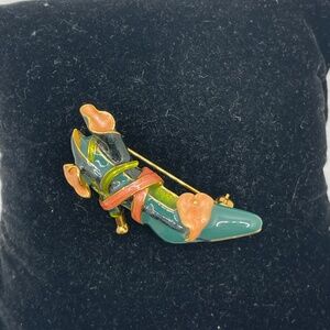 Kenneth Jay Lane KJL Vintage Green Peach Calla Lilly High Heel Pin Brooch