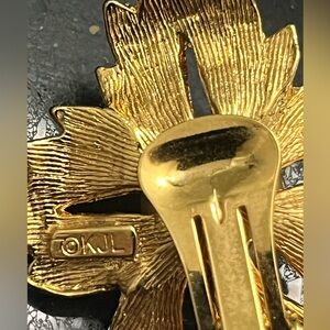 Kenneth Jay Lane KJL vintage estate pearl floral large clip on gold earrings QVC