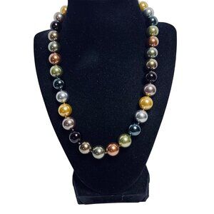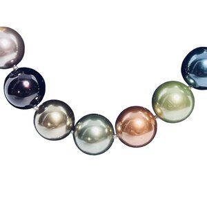 The Large metallic glass pearls are in nine colors: champagne, copper, dark brown, dark teal, gold, silver, yellowish green, green, and yellow.