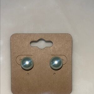 Vintage pearl stud earrings by Kenneth Jay Lane. Features gold, green, blue and pink tones. Ideal for versatile styling. Pearls have around 3/8" diameters give or take.
