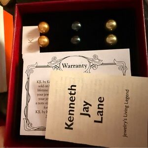 Experience the bold elegance of Kenneth Jay Lane's pierced earrings, featuring a striking combination of hues. These exquisite pieces are designed to make a statement, perfect for adding a touch of sophistication to any ensemble. Crafted with precision, they embody the brand's commitment to quality and style.