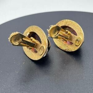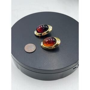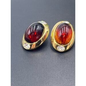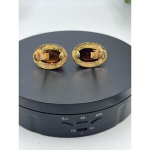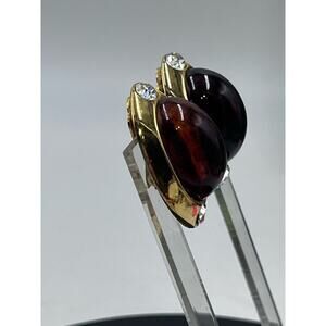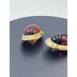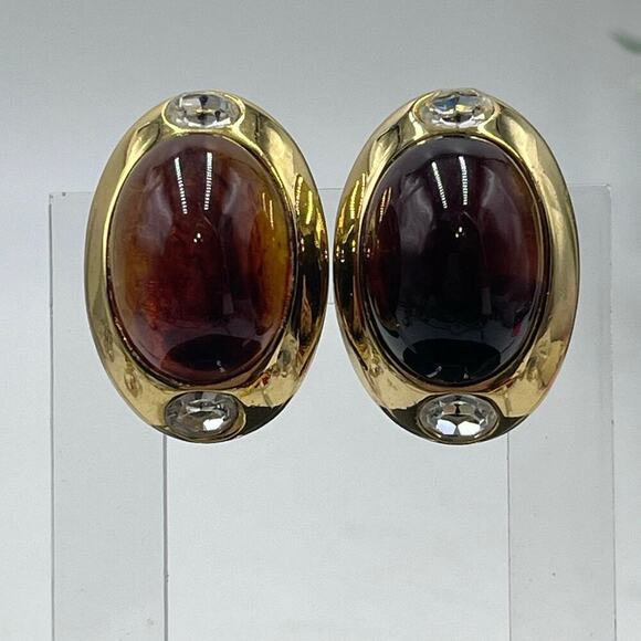 Kenneth Jay Lane Oval Brown Glass Cabochon Vintage Rhinestone Clip Earring