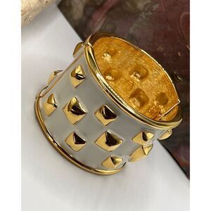 Kenneth Jay Lane Polished Gold 22K Goldplated & White Enamel Pyramid Wide Cuff Bracelet