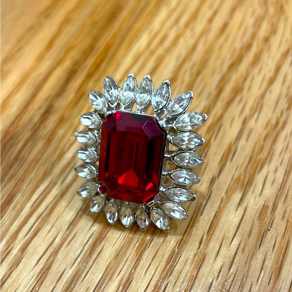 Kenneth Jay Lane Rhodium and Ruby Crystal Rhinestone Ring