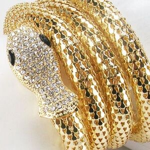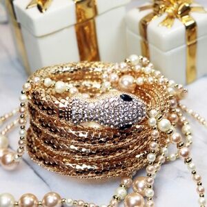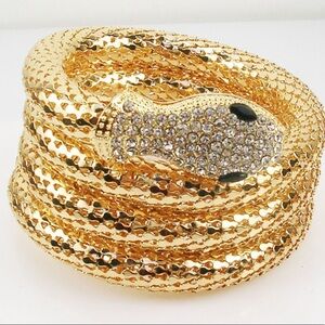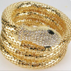 ⚜️ Kenneth Jay Lane Shimmering Gold Mesh and Clear Crystal Snake Wrap Bracelet