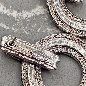 Kenneth Jay Lane Textured Silver Tone Circle Drop Post Earrings Door Knockers