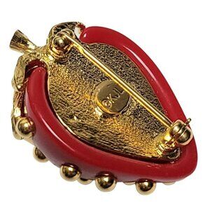 Kenneth Jay Lane Vintage Red Lucite Gold Tone Ballotini Strawberry Brooch Signed
