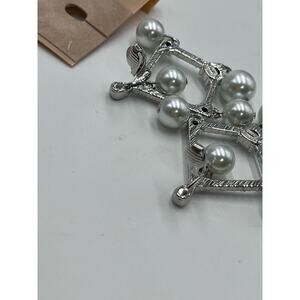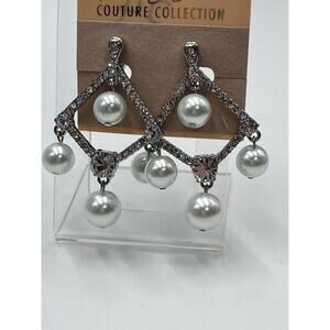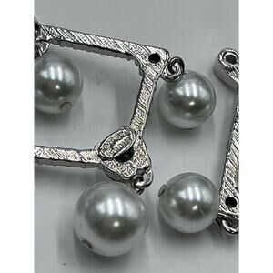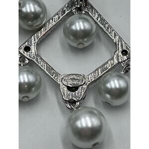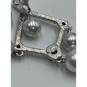 Signed White Faux-Pearl Crystal Drop Chandelier Silver Tone Earrings New