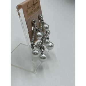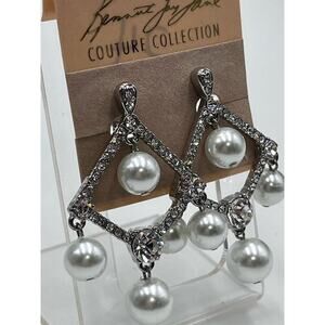 Kenneth Jay Lane White Pearl Crystal Silver Tone Chandelier Clip Earrings New