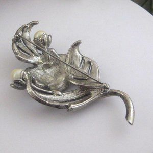 Lovely vintage KJL Kenneth Jay Lane for Avon "Antique Impressions" floral Brooch...Faux Pearl and Marcasite..Silvertone setting...Measures 3" long...Signed KJL for Avon...From the 1990's..in like new condition...