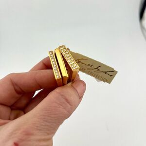 Kenneth Jay Lane NIB NWT 3-piece 22K Gold-Plated & Glass Crystal Ring Set - sizez 5