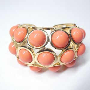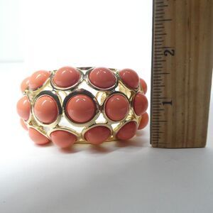 Kenneth Lane Hinged Cuff Bracelet Vintage Goldtone Coral Pink Bubble Chunky