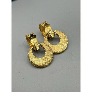 Kenneth Lane Signed Door Knockers Clip On Gold & Cream Enamel Removable Dangles