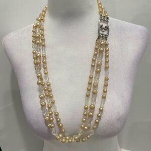 Kenneth Lane Vintage 3 Strand Faux Beaded Pearl Necklace