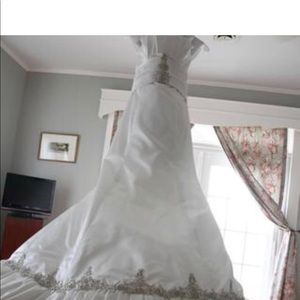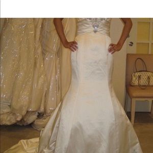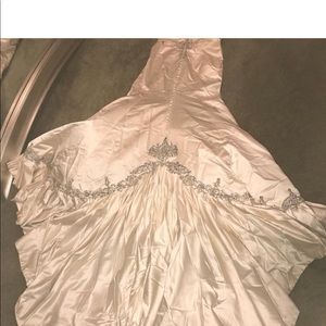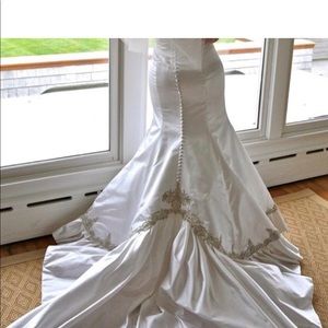 @regiinaaa164543 thank you! There is a missing button and a stain on the train from outdoor pictures. The dress hasn’t been dry cleaned, which is why I priced it low.