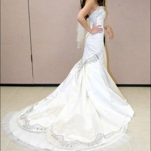 Jeweled Details scattered throughout. I would approximate the dress to be a size 2.