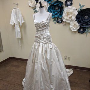 Kenneth Pool Wedding Dress Size 8. Fit our mannequin very well which is a size 6. SAVE BIG on this gorgeous gown from our bridal shop that is closing. Would recommend a dry cleaning to get out any minor imperfections/ have the wrinkles steamed out.