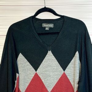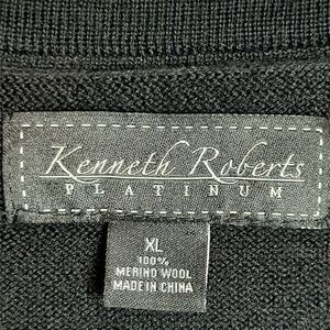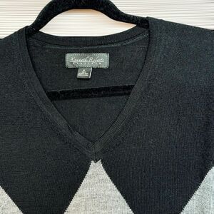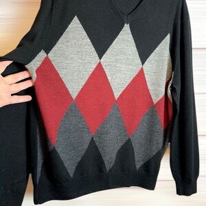 Kenneth Roberts Platinum Merino Wool Sweater Black Argyle V-neck Men’s size XL