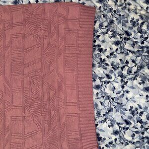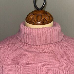 Beautiful dusty rose-colored turtleneck sweater in size large. The color photographs slightly more vibrant than it appears in person — it’s a soft, muted rose tone. Made from 100% acrylic for a cozy, comfortable feel.