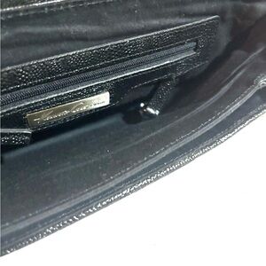 Elevate your style with this chic black and white leather shoulder bag. Perfect for any occasion, this bag combines elegance and functionality 2 compartment 3 pockets at interior wall 1 zip closure exterior have minor stains hight 5.5” wide 12” strap drop 9”